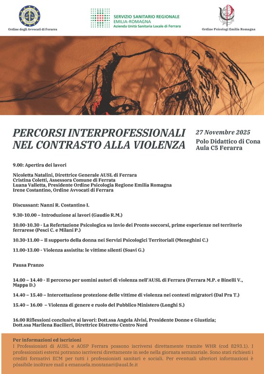 - https://salute.regione.emilia-romagna.it/agenda/aou-fe/2025/novembre/convegno-201cpercorsi-interprofessionali-nel-contrasto-alla-violenza201d