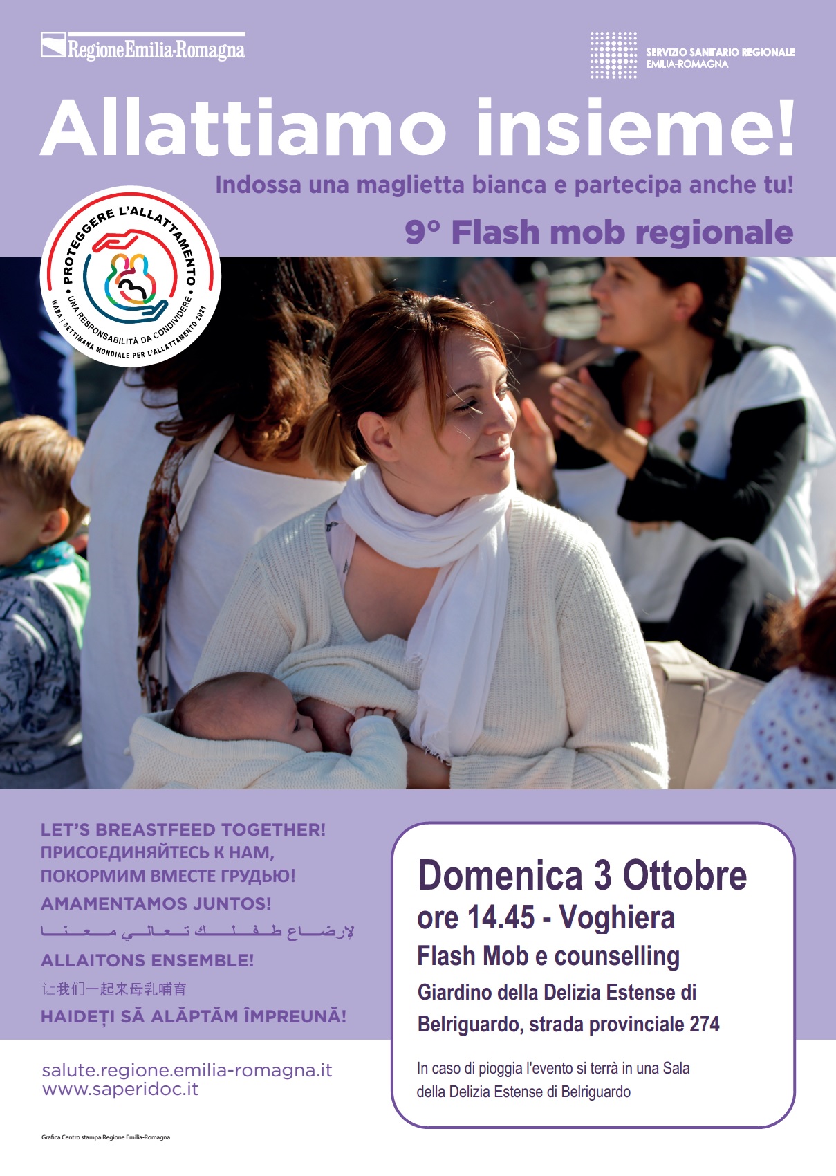 Flashmob 2021 https://salute.regione.emilia-romagna.it/cure-primarie/consultori/percorso-nascita/allattamento/flashmob/2021/ferrara/flashmob-2021 https://salute.regione.emilia-romagna.it/@@site-logo/2025-RER-IDENTITA-VISIVA_logo_mobile.png Flashmob 2021 flashmob Voghiera.jpg flashmob Ferrara.jpg flashmob Portomaggiore.jpg