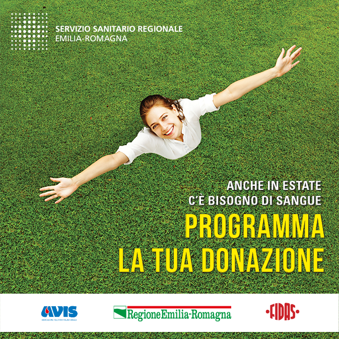 Ricordati di donareAnche in estate c'è bisogno di sangue, programma la tua donazione (campagna estiva 2016)https://salute.regione.emilia-romagna.it/sangue/home/Home_sangue/viewhttps://salute.regione.emilia-romagna.it/@@site-logo/2025-RER-IDENTITA-VISIVA_logo_mobile.png